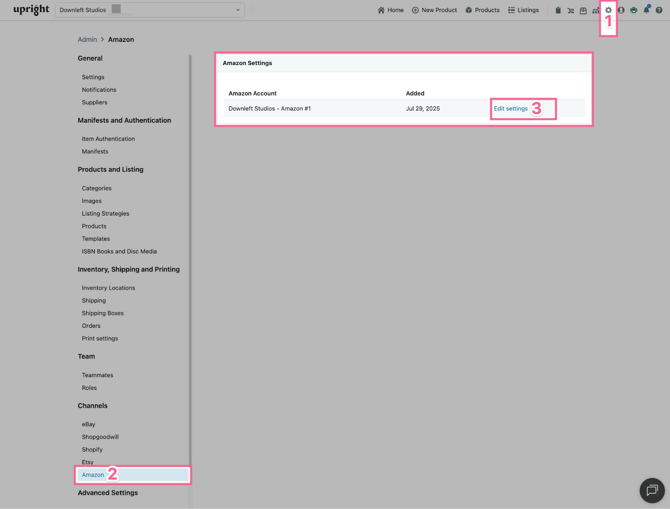 After you’ve connected Amazon to Lister, Amazon settings are found in the admin section of Lister. Only admins and custom roles with access to manage channel settings can view and edit these settings.