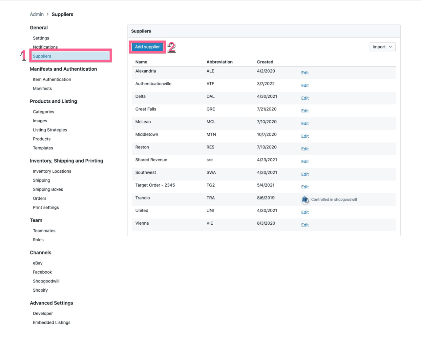 Shopgoodwill Note: Edit suppliers from within the Shopgoodwill seller portal, then re-import the supplier list using the steps above in How to Import Suppliers from Shopgoodwill.