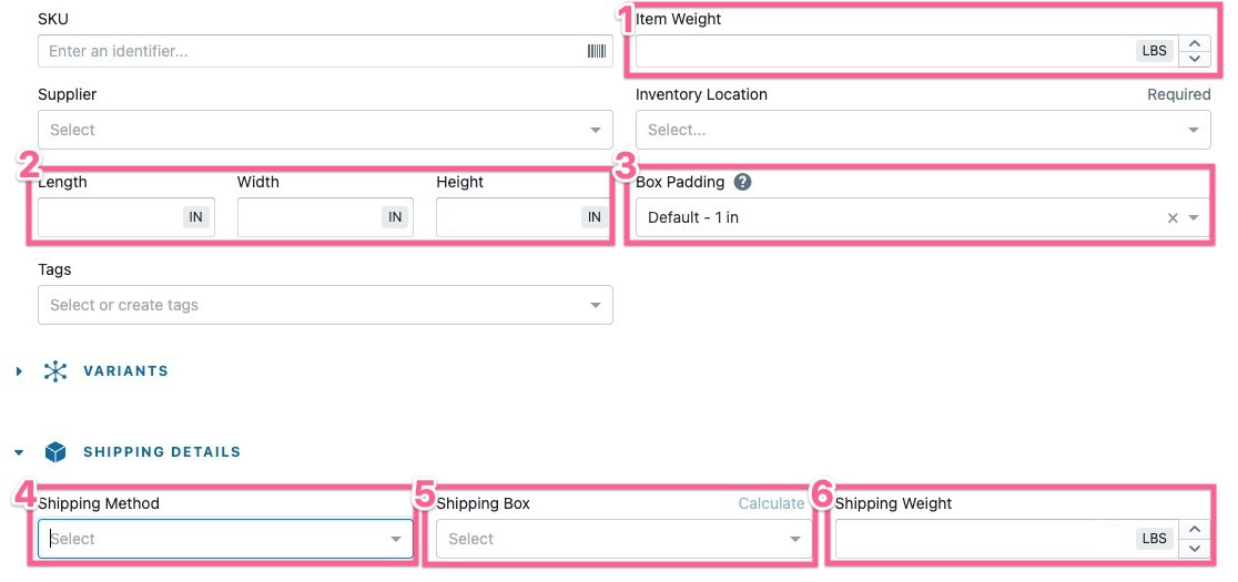 While Box Padding and Shipping Box fields aren’t required, they have a big impact when it comes to shipping your items.