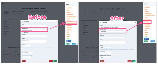 • Variable Name: The variable name is the code used to add the lister's entry for the field into the title and description. It will default to match the label name but can be edited Variables are case-sensitive and cannot include special characters.