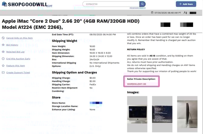 Copy the “Seller Private Description” from the Shopgoodwill seller item page