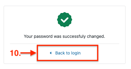 10. Once you see the confirmation screen, you can click “Back to login” to return to the login page and enter your new password