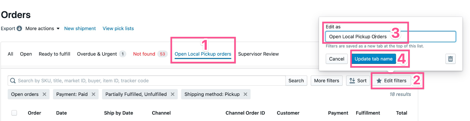 Only shows unfulfilled local pickup orders.