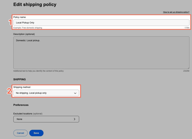 - Name the policy clearly to identify it for Auctions and Local Pickup