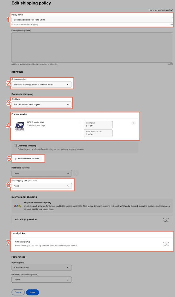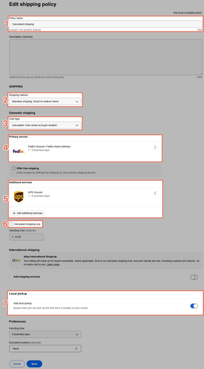 eBay business policies allow you to set shipping, returns, and payment rules. Business policies control things like: