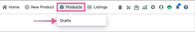 💡 Operational Tip: You can go directly to the drafts product page from anywhere in Lister by hovering the mouse over the Products shortcut in the top navigation bar and selecting “Drafts”