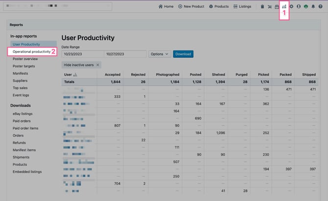 The Operational Productivity report gives you a powerful way to view your operation’s throughput at key steps of the product life cycle. Choose the time range and level of detail you’re interested in, and the report will graph your performance over time.