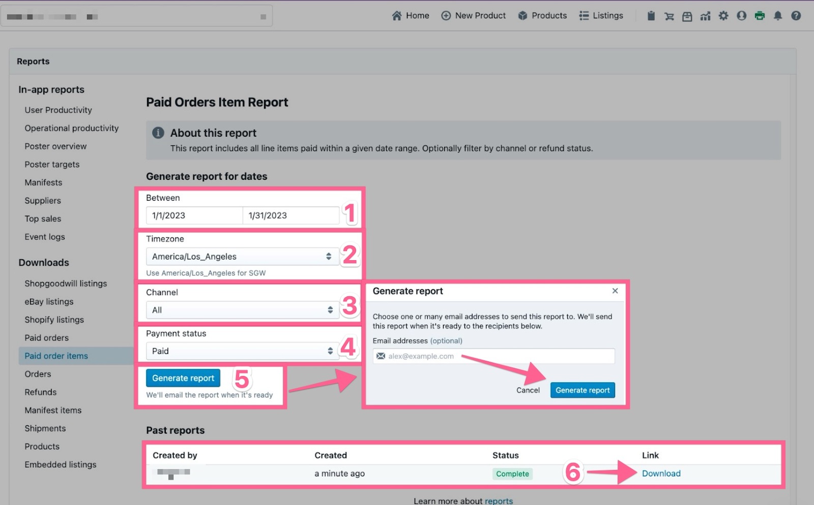 How to Download the Paid Order Items Report