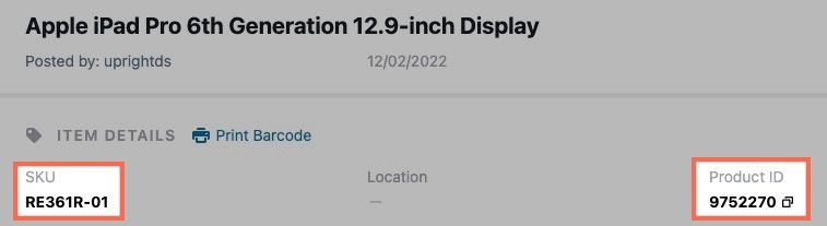 • The Product SKU is located on the Products page and is not the same as the Upright Product ID