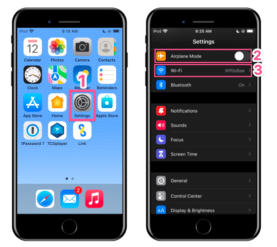 - Confirm the iOS device isn’t in airplane mode and is connected to the internet by following the basic troubleshooting steps above