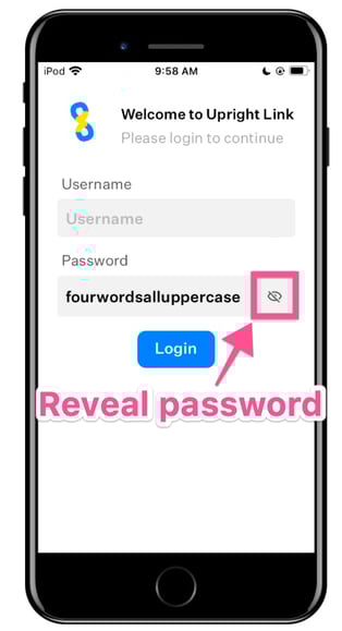 - Click the password reveal icon on the login screen and confirm the password is correct (passwords are case-sensitive)